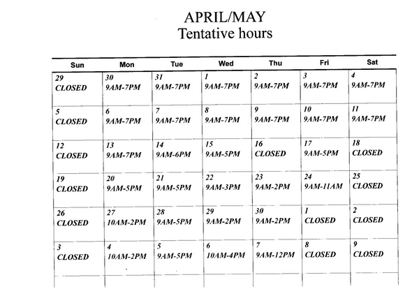 APRIL 22 CLOSING AT 11AM